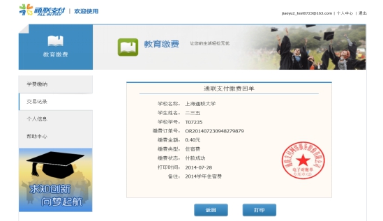 用户可点击打印,打印缴费电子回单,最为交易凭证。