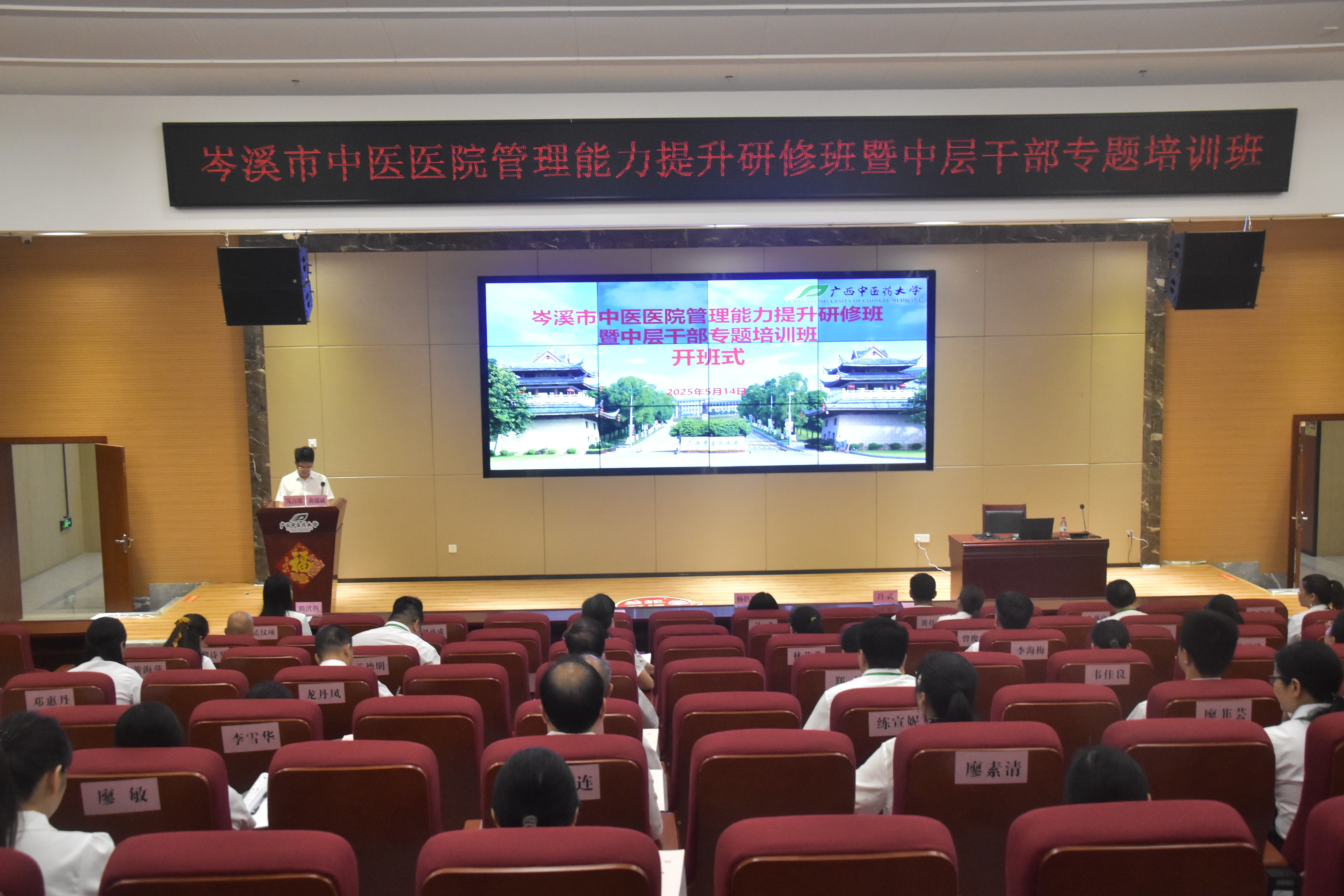 5月13日—22日,由广西中医药大学主办、继续教育学院承办的岑溪市中医医院管理能力提升研修班暨中层干部专题培训班分两期在我校顺利举办。自治区中医药管理局科教处处长杨艳光,自治区纪委监委驻广西中医药大学纪检监察组组长、学校党委副书记、纪委书记覃宇环,学校党委常委、副校长唐振宇,广西名中医、知名专家庞宇舟、唐乾利、周晓玲、卢健棋等10余名专家学者开展专题授课,86名医院中层干部参加培训。