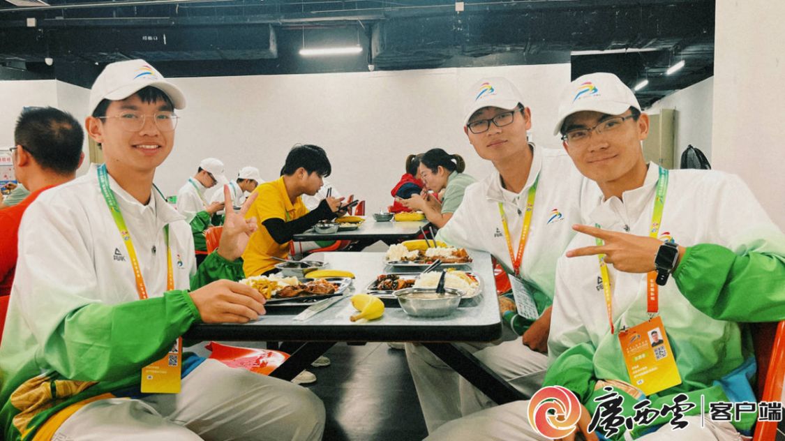 我们宿舍四位同学都在不同的岗位上,所以会经常分享在志愿服务过程中碰到的趣事。在开幕式排练工作中,我们经常感叹舞台的壮丽炫彩,每一次观看都是不同的感受,尽情地享受视觉盛宴。在运动员村中,舍友总是提起她们碰到了很多友善可爱的运动员,经常听到运动员夸赞广西人民的热情,也会分享一些美食给志愿者,非常能感受到她们的热情和朝气蓬勃。在非遗项目体验室中,运动员们都会耐心地听从指导。我们都在各自的岗位上发光发热,为学青会贡献出自己的一分力量。