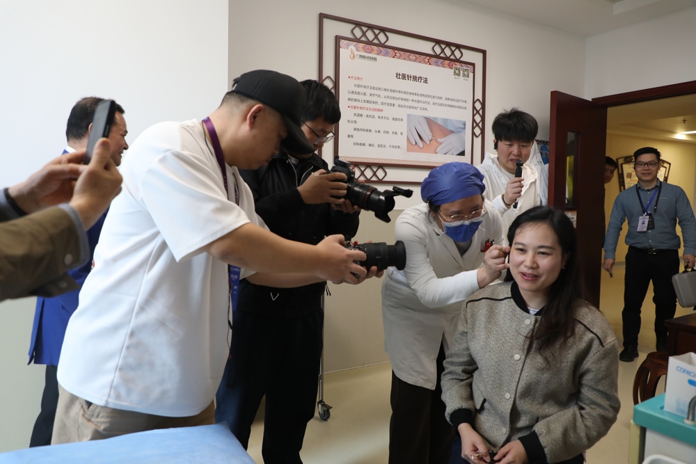 记者们通过观看壮药绣球操、品尝壮医药茶点、参观院史馆、体验壮医特色技法等方式,了解壮瑶医药的文化内涵及在科技创新支撑下释放的新质生产力。