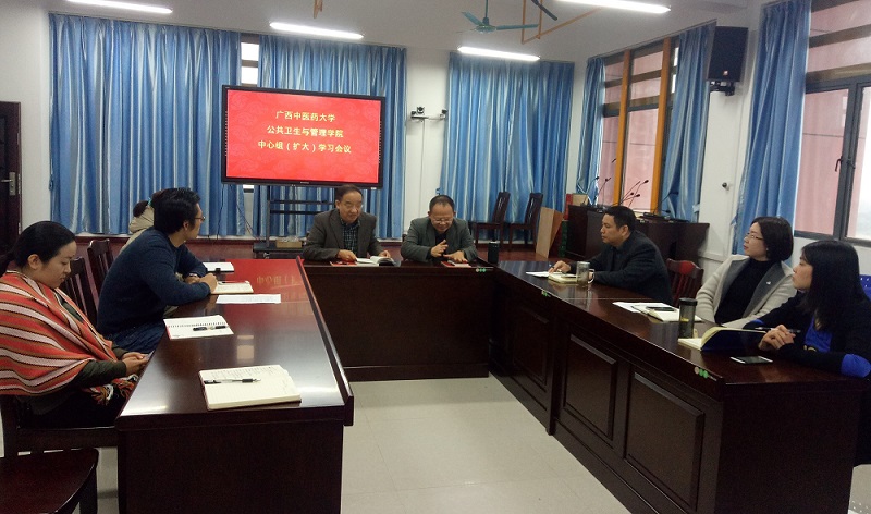为学习宣传贯彻党的十九大精神,2017年11月27日下午,公共卫生与管理学院在自诚楼A801召开中心组学习(扩大)会议。党总支书记李怀泽带领与会人员学习党的十九大精神并主持会议。会上党总支书记李怀泽、副院长王碧艳、学生工作办公室主任宋南作学习发言。