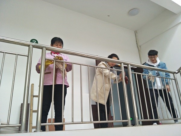 本次活动旨在培养党员志愿服务精神,切身体会保洁阿姨工作的不易。本次活动安排为擦拭活动中心楼梯围栏、玻璃及桌椅。全体在校党员按照提前分配的任务带好清洁工具,在保洁阿姨的带领下,开始认真的擦玻璃、擦围栏、擦桌椅,整个活动过程井然有序。活动期间,保洁阿姨也一起参与到活动当中,认真指导我们如何打扫卫生,提醒我们容易忽视的角落。最后,本次活动在保洁阿姨的感谢中圆满结束,