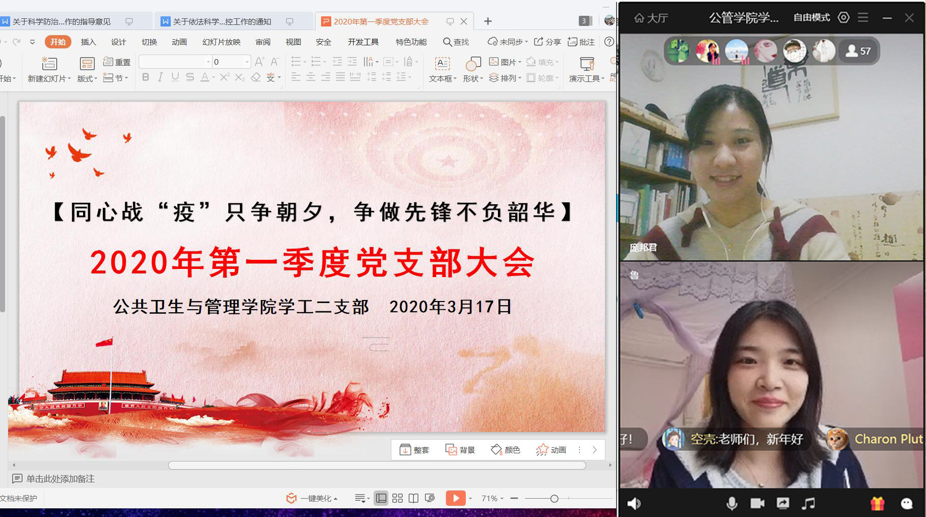 【同心战“疫”只争朝夕,争做先锋不负韶华】公共卫生与管理学院学工二支部召开2020年第一季度支部大会暨3月支部委员会