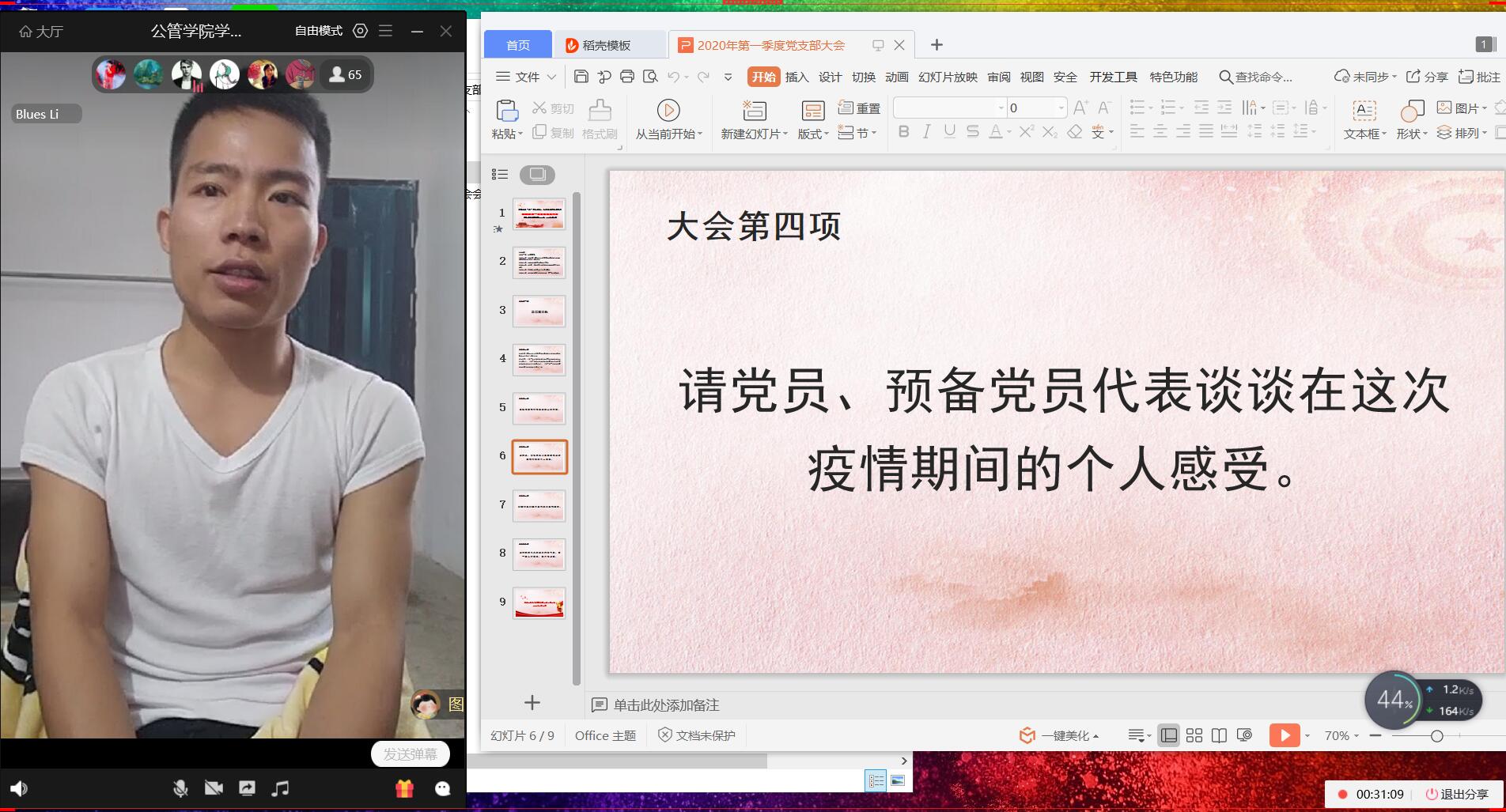 此次网络直播大会是支部工作在新形势下的一次大胆尝试,会议圆满成功,为今后支部开展学习、工作提供了新的思路,同志们纷纷表示很喜欢这种形式,并提议今后可以多尝试应用到其他的环节中。