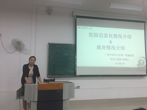 广西中医药大学第一附属医院信息工程部 林柳云部长向学生介绍信管专业的就业情况