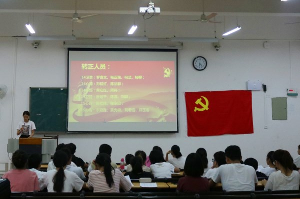 此次大会主要有三个议程,第一个议程为我院学工党支部换届大会暨委员增补大会,会议遵循“公平、公正、公开”的选举原则,采用无记名投票方式选举产生了新一届学工党支部委员,委员名单为:宋南担任党支部书记、鲁蕴律担任党支部副书记、庞邦君担任党支部纪检委员、王美海担任党支部组织委员、王文婷担任党支部宣传委员。紧接第二议程是预备党员转正大会。申请转正的预备党员依次上台进行考察期一年来工作、学习、生活的总结发言,表达了想要加入中国共产党的强烈愿望。在场拥有表决权的党员对其进行审议,并以无记名投票方式进行表决,所有预备党员得以如期转正。第三议程是发展对象申请入党。18位发展对象依次上台陈述了本人的入党动机、入党意愿、在校表现等,在场拥有表决权的党员对其进行审议,并以无记名投票方式进行表决,18位发展对象成为了预备党员。最后,宋南老师对本次大会成功转正及发展的同志表示祝贺并提出期许,鲁蕴律老师带领大家一起学习习近平总书记北大师生座谈会,让同学们更深刻的理解讲话内容,并学之用之,为今后的工作学习指明了方向。