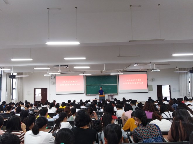 2018年7月1日18:00,在仙葫校区教学楼1-201教室,公共卫生与管理学院召开全院学生暑假前安全教育大会。大会由学院学生工作办公室主任宋南老师主讲。