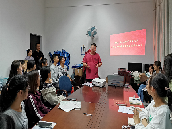 接着,王伟就如何规划好大学期间的学习、工作和生活展开经验分享,启发学生干部要学好专业知识,要学会高度自律、管理时间,鼓励干部们多读书、读好书。王伟结合自身做学生干部经历的宝贵经验分享,获得了我院全体学生干部的一致认可。