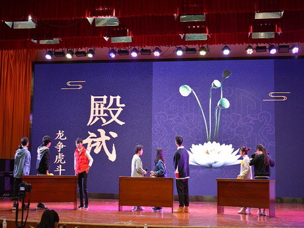 在我校第六届国学知识竞赛初赛中,田旭、许宝莲和冯淑渝同学成绩在我院名列前茅,就此组建一支代表队,代表我院参加决赛。决赛共分为乡试、会试、殿试三个部分,当天早上,我院代表队到场签到并做好准备工作,在第一轮乡试时,通过各个学院代表队轮流答题的方式进行比赛,我院代表队沉着冷静,理智作答,成功晋级下一轮。紧接着便开始了会试,竞赛题目难度提升,我院代表选手田旭同学多次抢答得分,为我院再次入围做出了贡献。最后,我院代表队为获得好成绩兵行险招,挑选高积分高难度题目作答,成功在三只参赛队伍中脱颖而出,拿下国学知识竞赛状元奖。