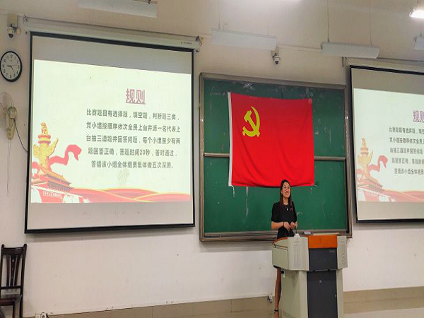 本次活动以党小组为单位,每组随机抽取3题,答对2道即为“挑战成功”,否则则要全体党员做5个蹲起以示惩罚。本次题目多方位,多层次,多角度地涵盖了党史及党的纲领的主要内容。本次活动不仅考察了同学们对党的了解,而且也让大家在学习中获得了乐趣。