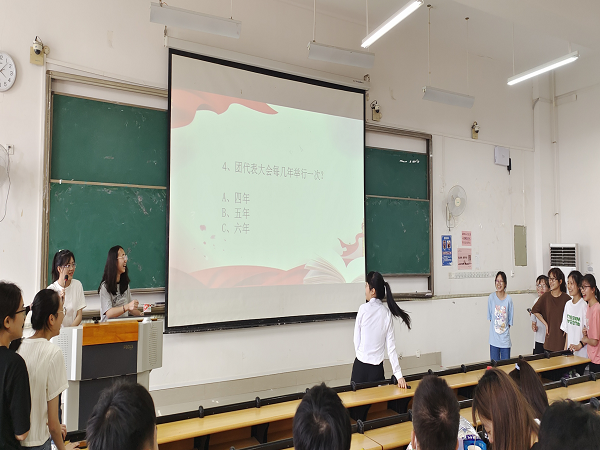为献礼中国共产主义青年团建立100周年,引导青年团员学习团史,传承红色基因,同时加强学院团委学生会各部门之间的沟通与联系,提高学生干部的综合素质,我院团委、学生会于2022年5月14日15:00在广西中医药大学仙葫校区教学楼1-307和教学楼前草坪处开展了以“庆祝建团百年,绘就青春华章”为主题的学生干部培训活动,我院团委书记鲁蕴律老师出席并指导了本次活动。