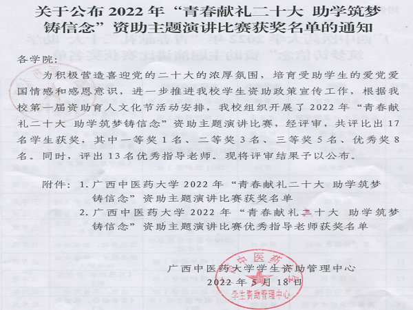 我院学子在校资助主题演讲比赛中获奖 来源:公共卫生与管理学院学生工作办公室 作者:宋南 发布时间:2022-06-04 11:46:36 浏览次数: 次 【字体:小 大】 在我校第一届资助育人文化节活动主题演讲中,我院2021级预防医学院专业唐嘉星获得二等奖第一名,被学校推荐参加自治区演讲比赛。 分享到: 【打印正文】