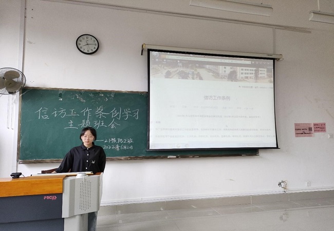 信访工作是党的群众工作的重要组成部分,是党和政府了解民情、集中民智、维护民利、凝聚民心的一项重要工作,是各级机关、单位及其领导干部、工作人员接受群众监督、改进工作作风的重要途径。为了让同学们更加深入了解国家信访工作,进一步引导同学们依法、有序文明信访,根据教育厅关于信访工作条例学习的通知要求,并结合我院开展的相关工作,21预防医学于2022年6月2日开展“信访工作条例学习”主题班会。