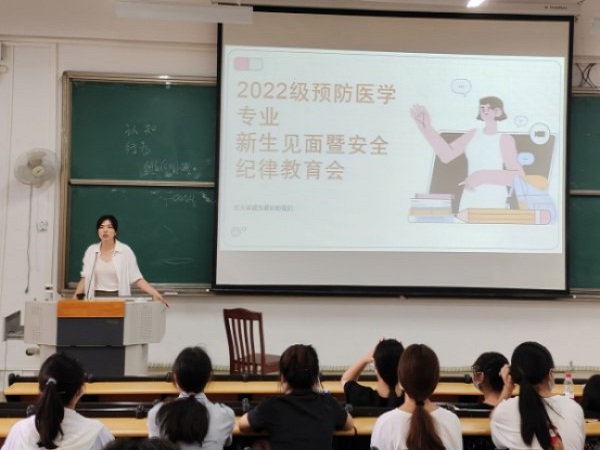 为了做好2022级预防医学新生入学教育,帮助新生更快适应大学生活,鲁蕴律于2022年9月15日16:00在广西中医药大学仙葫校区1-209教室召开了新生教育暨安全纪律教育会。会议由我院团委书记鲁蕴律主持,2022级预防医学全体新生参加本次会议。