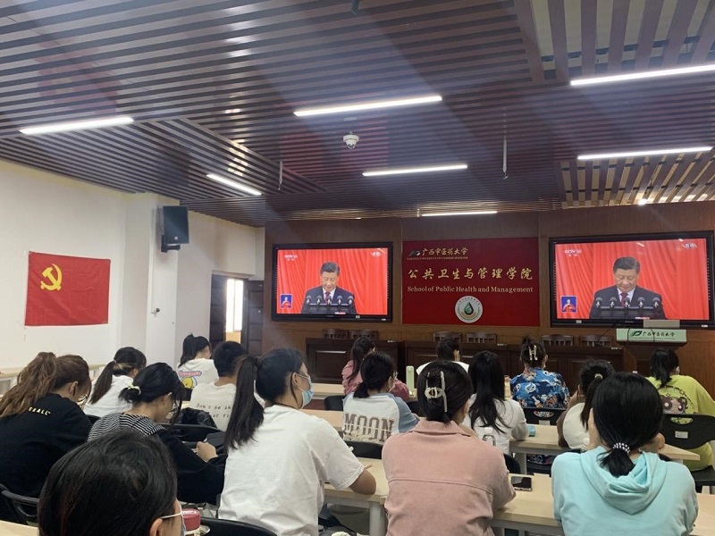2022年10月16日上午,中国共产党第二十次全国代表大会在北京开幕,习近平总书记代表第十九届中央委员会向大会作报告,公共卫生与管理学院党总支学生第三党支部组织支部全体党员在自诚楼A801会议室共同收看习近平总书记在中国共产党第二十次全国代表大会上作报告的直播。