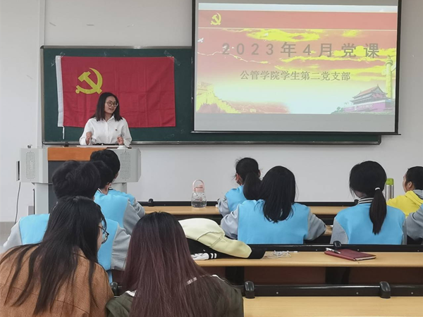 为培养党员的文化历史认同感,推进文化自信自强,4月9日下午公共卫生与管理学院学生第二党支部于仙葫校区教学楼2-210组织全体支部党员和入党积极分子开展“赏中国气韵,品文脉悠长”主题党课。本次党课由支部副书记曾梅娇主持。