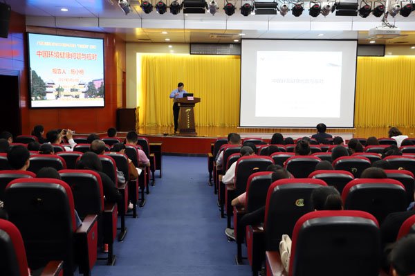 5月10日下午,由校科技处主办,公共卫生与管理学院、广西高发传染病中西医结合转化医学重点实验室协办的公共卫生专家讲坛系列讲座2019年第2讲在仙葫校区图书馆第二会议室举行,讲座由中国预防控制中心研究员、环境所所长施小明主讲,主题是《中国环境健康问题与应对》,会议由校科技处肖健处长主持,全校师生300多人聆听了讲座。