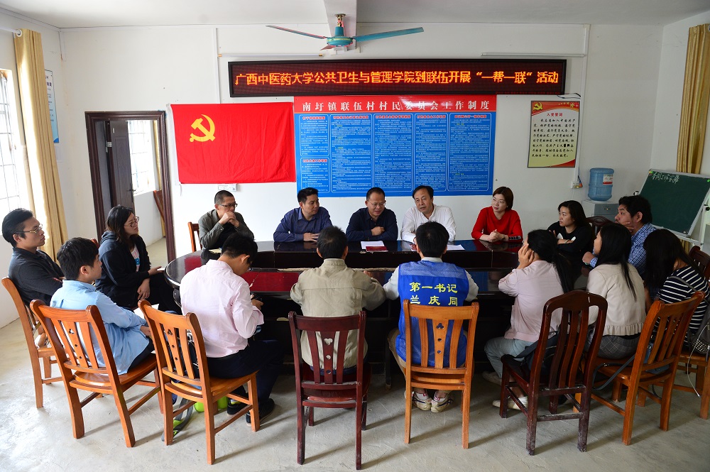10月12日,广西中医药大学公共卫生与管理学院党总支书记李怀泽、院长副书记董柏青、副书记副院长凌泽农、副院长王碧艳带领学院党员教师一行前往广西隆安县南圩镇联伍村陇黎屯、隆信屯、都乐屯和都润屯,走村入户访慰问扶贫对象。这项活动的开展,旨在贯彻落实中央及自治区党委关于脱贫攻坚工作的部署,响应学校党委号召,强化高校党员教师同贫困农民的联系,推进精准扶贫工作。