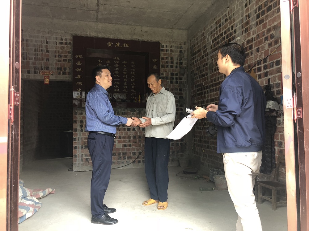 慰问小组与我校驻该村第一书记兰庆同及村委会干部进行了座谈。了解该村帮扶对象家庭基本情况、生活水平及扶贫工作进展,以便有针对性地给予其帮扶。 随后,学院领导班子与教师党员干部分组入户进行一对一走访慰问,并为他们送上慰问金。与帮扶对象促膝交谈,嘘寒问暖,详细了解他们的身体健康状况、家庭成员信息、子女入学情况等等关切问题,以及当下所面临的实际困难,认真填写帮扶手册。用真情拉近感情,并嘱咐他们在生活上遇到什么困难应及时与帮扶组织联系,积极克服困难,增强脱贫信心。