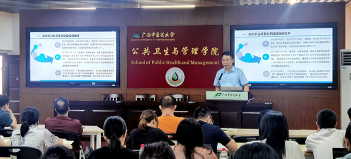 2022年9月,广西壮族自治区教育厅、自治区卫生健康委发文认定我校作为全区高水平公共卫生学院建设高校之一。为推进高水平公共卫生学院建设工作,2022年10月25日下午,我院在仙葫校区自诚楼A801召开建设高水平公共卫生学院动员会。我院全体教师参加此次会议。