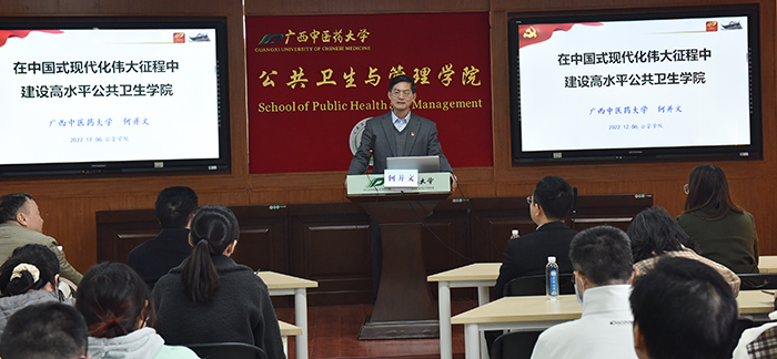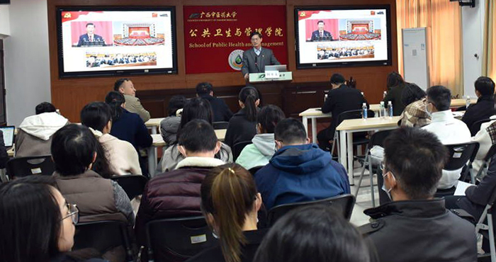 本次党的二十大精神宣讲内涵丰富、图文并茂、分析透彻,既有理论高度、思想深度,又有很强的现实针对性、指导性。为我院准确把握发展方向,建设高水平公共卫生学院开阔了视野、拓宽了思路。我院将继续和聚合力,团结拼搏,为早日建成具有广西特色、鲜明中医药特色的高水平公共卫生学院而奋斗。