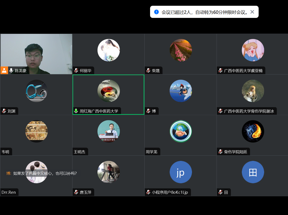 国医大师韦贵康学术思想与临床诊疗传承发展研究中心开放课题经过形式审查、专家评审、择优推荐、立项公示等严格环节,最终确定“韦氏奇穴手法治疗颈源性高血压的临床研究”等15项课题立项。2023年7月3日,国医大师韦贵康学术思想与临床诊疗传承发展研究中心在线上召开开放开题启动会议。中心主任周红海教授主持会议。