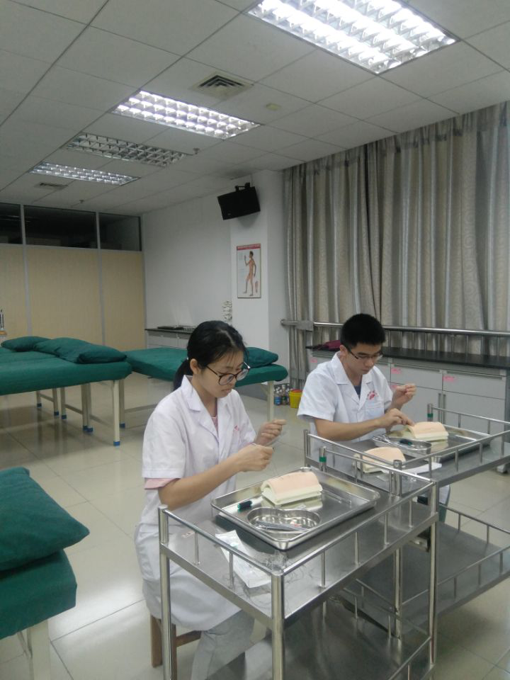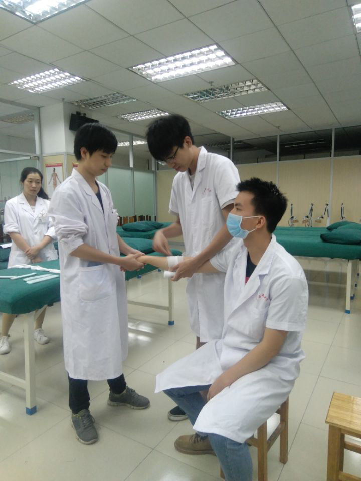 此次大赛由骨伤学院韦明老师负责,谢冰、韦理、田君明和张璇老师担任大赛评委,骨伤学院团委书记温健老师担任督察员,确保大赛公平、公正、公开。大赛考核的技能分别是清创缝合术、夹板固定、推拿手法和腰椎侧扳法等。全程比赛共设两个考点,按照赛程有序进行,历时三个小时,比赛圆满结束。