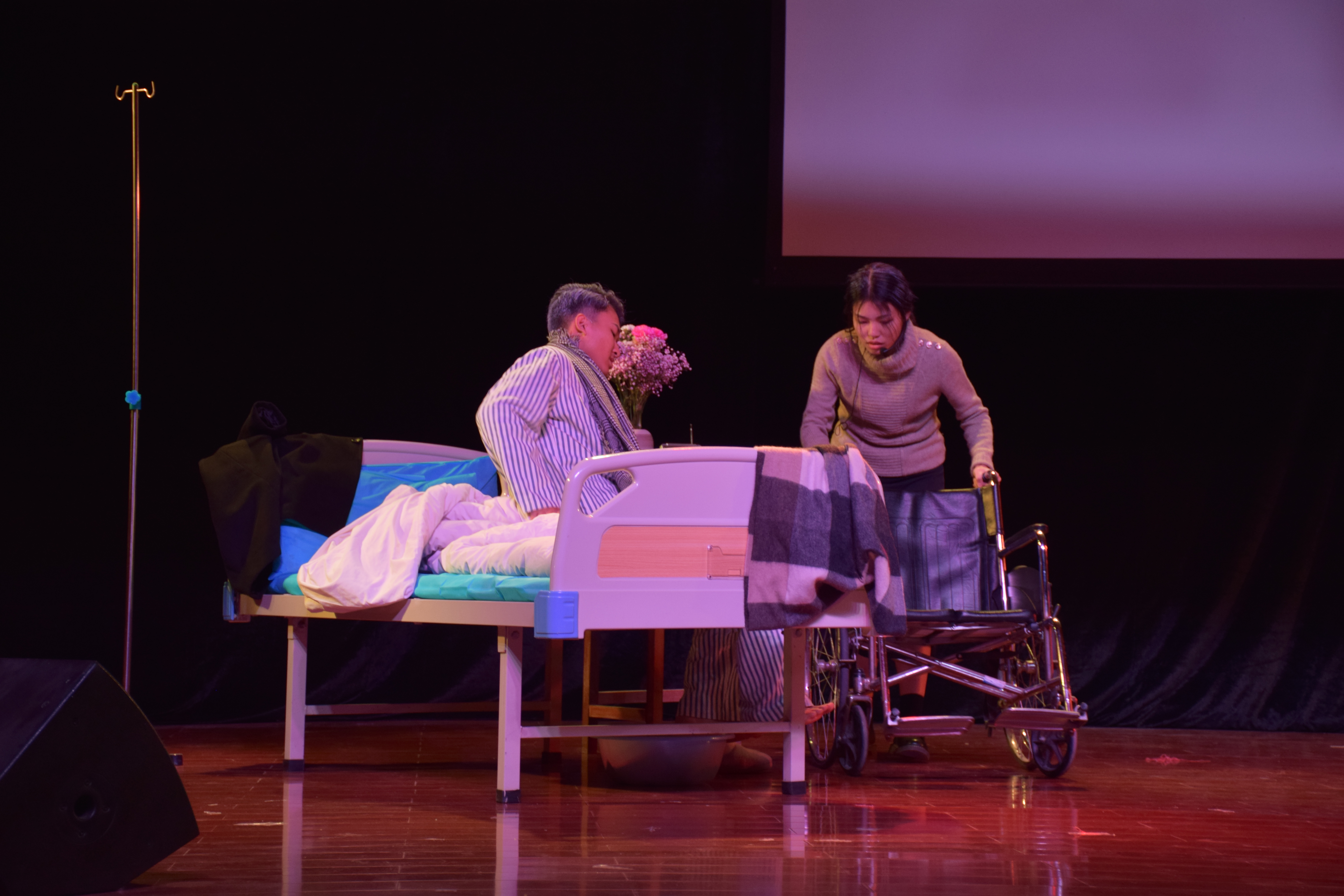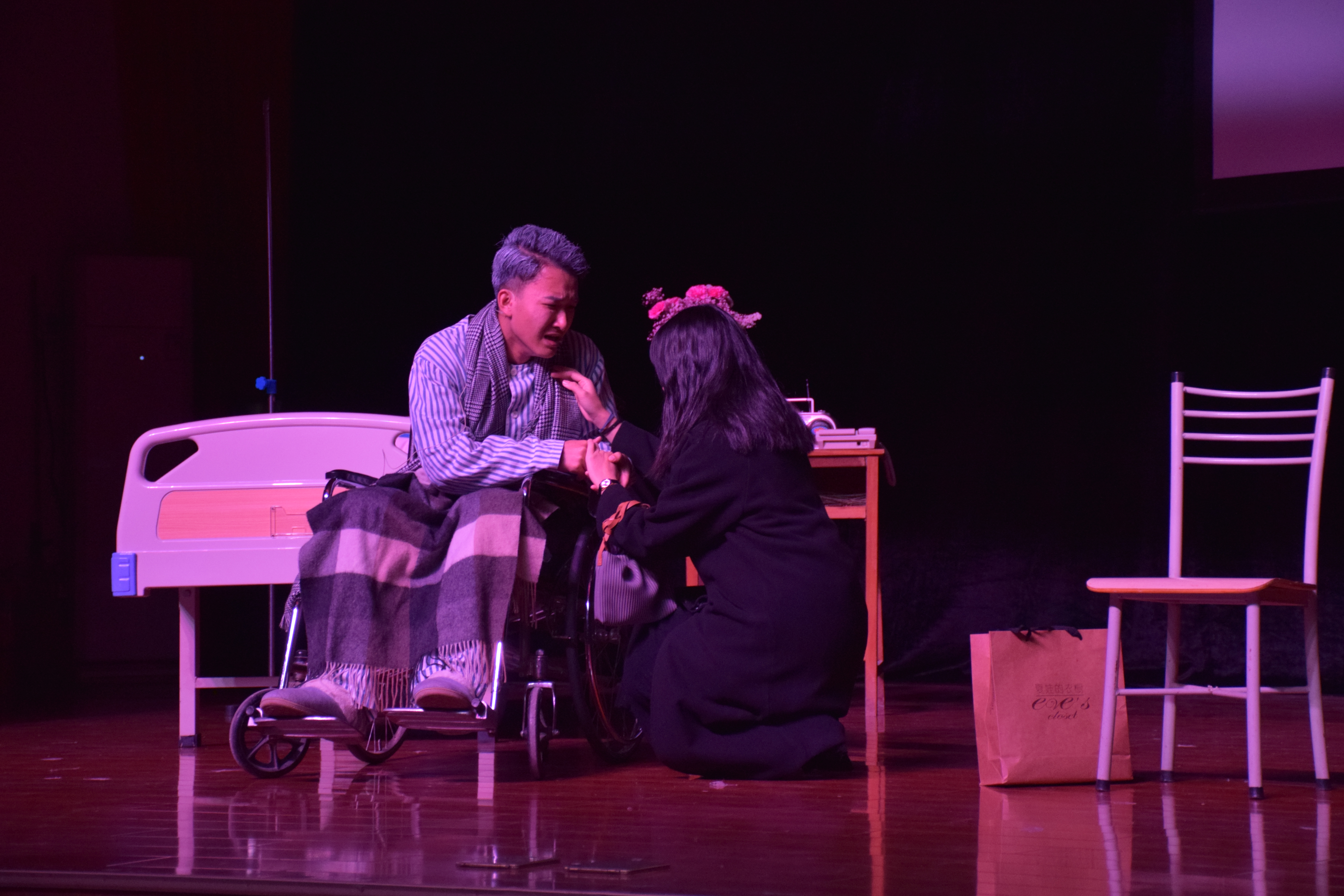 赛场上,来自十个学院的十个参赛作品为广大的师生献上了精彩的视觉盛宴。我院的《暗恋桃花源》讲述的是青年男女江滨柳和云之凡在上海因战乱相遇,也因战乱离散;其后两人不约而同逃到台湾,但彼此却不知情。苦恋40年后方得以相见,当时男婚女嫁已多年,且此时江滨柳已濒临病终的现代爱情悲剧。故事情节衔接紧凑,引人入胜,演员的表演细致而不失大方。赛场上,温情与感动并行,活泼与开朗共进,将悲伤浓缩,展现出作品的魅力,让舞台跨越时空而来,身临其境,给现场观众留下了无限的遐想和感悟!