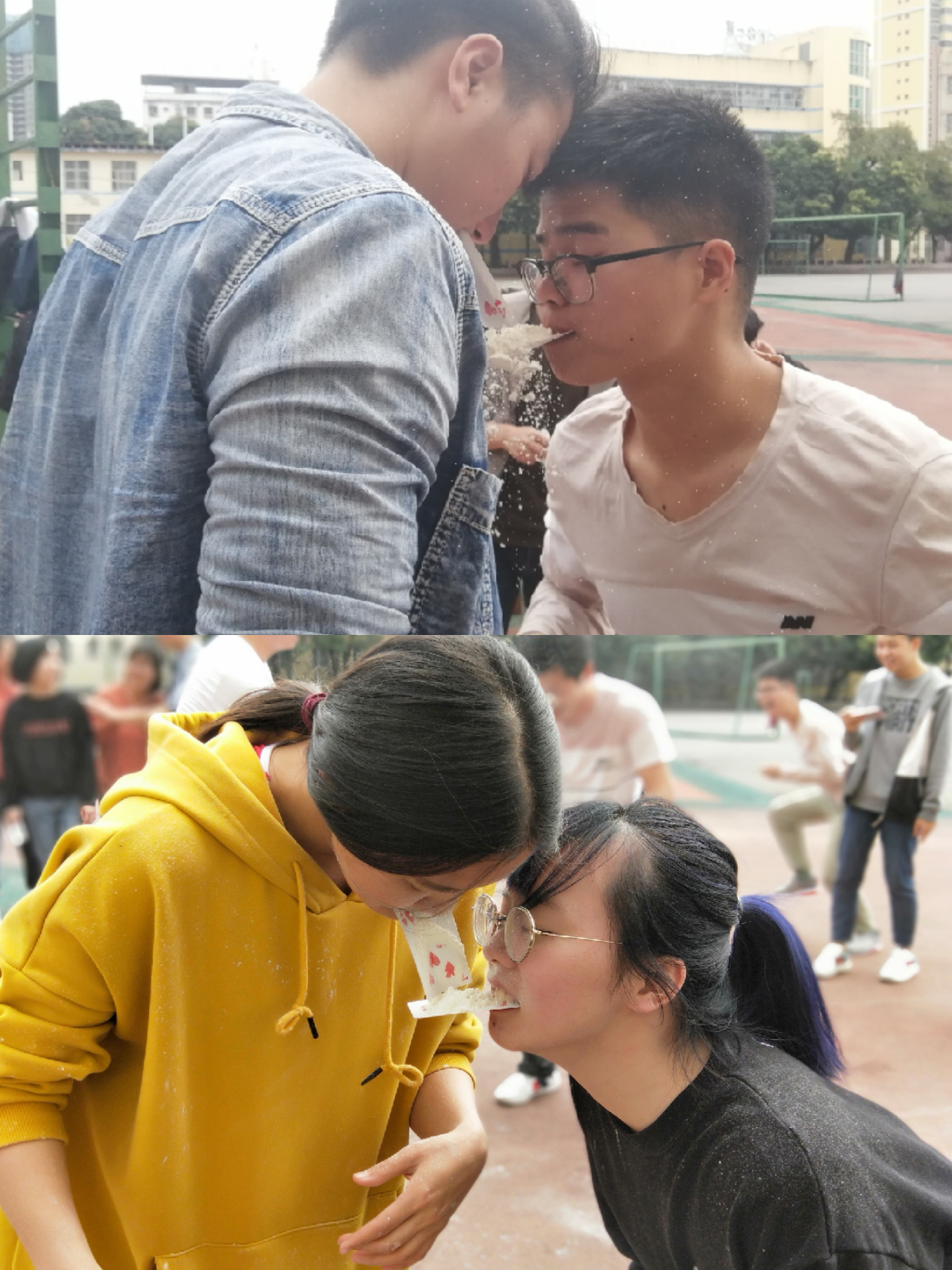 下午13:00全体成员集合完毕,进行组队抽签,通过四个游戏“我爱你不要脸”“猜词大作战”“扑克传面粉”“抓气球”考验同学们的反应能力以及团结协作能力,相互娱乐,身体得到放松、锻炼,同时增强班级同学情感交流,促进感情!