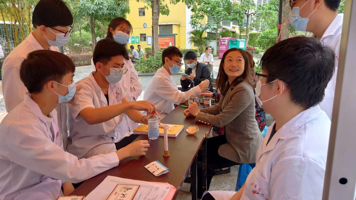 活动得到了明秀南社区居民委员会的大力支持。在义诊活动中,我们分工明确,组织有序:推拿手法组负责为群众做骨伤科常见病的防治;血压组负责为群众测量血压、健康咨询;宣传组负责宣讲健康知识;八段锦组负责现场展示拳法。社区的居民以及路过的群众脸上挂着愉快的笑容,纷纷前来与我们互动。