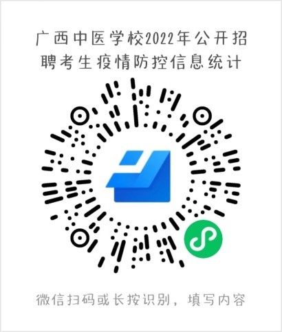 广西中医学校(广西中医药大学附设中医学校)2022年公开招聘实名制工作人员健康管理档案报备截止时间公告 发布时间:2022-07-06 17:27:37 浏览次数: 次 【字体:小 大】 根据疫情防控要求,疫情期间,要求考生进行健康管理档案报备工作,参加2022年7月8日笔试的考生,须于2022年7月6日晚12:00前完成健康管理档案报备工作;参加2022年7月12日笔试的考生,须于2022年7月8日晚12:00前完成健康管理档案报备工作,不按要求报备的,视为自动放弃考试资格。 报备方法:微信扫下方二维码进行报备。(已经按要求报备过的考生不需要重复报备) 分享到: 【打印正文】