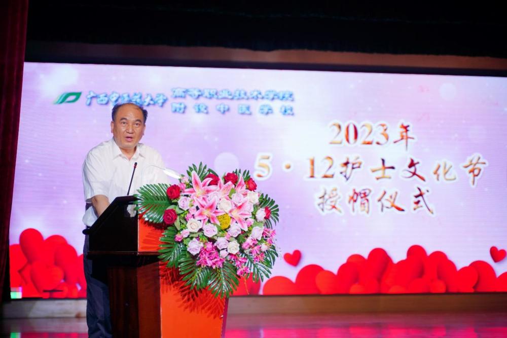 为喜迎即将到来的第112个国际护士节,5月9日晚,高等职业技术学院、附设中医学校在北湖校区大礼堂为即将走上护理岗位的586名同学举行了神圣的授帽仪式。广西中医药大学副校长冷静及相关部门领导,高职院、附设中医学校领导班子成员和全体教职员工参加了本次活动。活动由副院(校)长周琦主持。