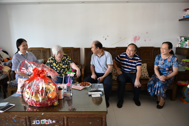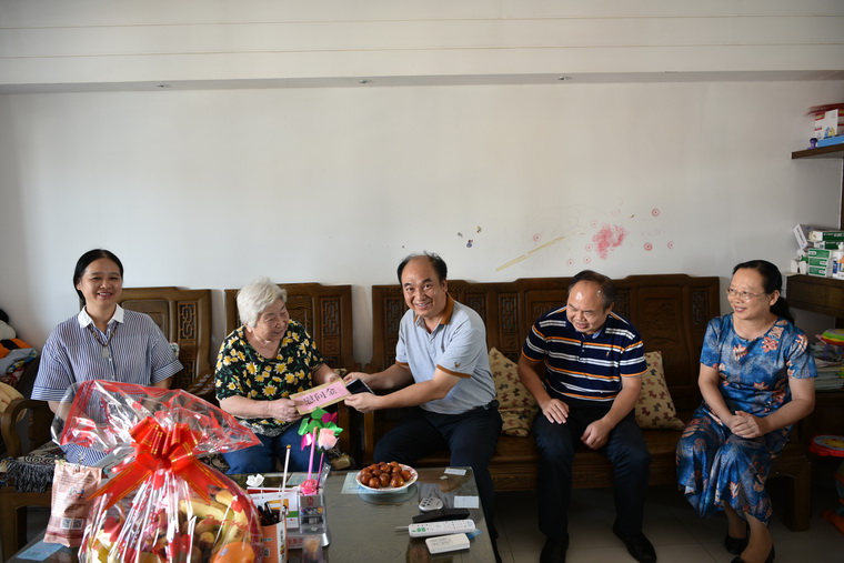 广西中医学校国庆节前走访慰问离休老干部 发布时间:2019-09-20 16:32:51 浏览次数: 次 【字体:小 大】 今年是中华人民共和国成立70周年,在国庆节来临之际,广西中医学校校长刘竑清、纪委书记黄勇及相关部门负责人一行四人,走访慰问了我校离休干部赵淑明,给她送上节日的问候,并与老同志忆往昔、叙发展。他们还详细询问老人的生活、身体状况,送去了慰问品和慰问金。 赵淑明对学校的关心和慰问表示感谢,表示将继续关心支持学校工作,不遗余力发挥余热。 刘竑清校长(中)和离休老干部亲切交谈 刘竑清校长(中)向离休老干部送上慰问金 分享到: 【打印正文】