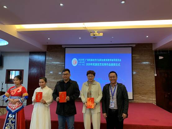 由广西民族技艺行业职业教育教学指导委会牵头举办的2020年广西民族技艺优秀作品评比展,于2020年11月12日下午进行颁奖仪式,我校参展6个作品均获佳绩:最佳创新奖—壮药颈宝,二等奖—活血化瘀足浴散、彩绘壮医目诊学习卡,三等奖—醒神开窍香囊、紫草膏、口红。