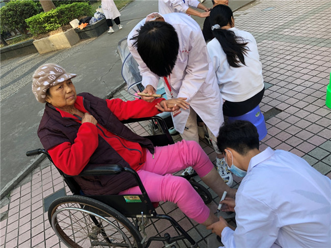 义诊活动从早上8点半到中午12点,在活动现场,志愿者服务队为社区居民进行了测量血压、按摩推拿、艾灸、传统养生功法教授和秋季健康知识宣讲等。志愿者们专业的医学知识、娴熟的操作技能、良好的职业素养得到了居民的高度认可,前来参加义诊的群众络绎不绝。
