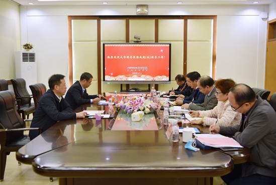 3月1日下午,广西中医药大学党委书记莫锦荣在党委办公室主任徐方明的陪同下到高职院、附设中医学校调研指导工作。高职院、附设中医学校党委书记蒋子华、院(校)长刘竑清及班子其他成员、相关科室负责人陪同。