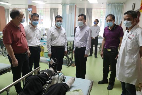 4月8日下午,广西中医药大学党委书记莫锦荣在党办主任徐方明的陪同下到高职院、中医学校附属重阳老年公寓考察指导工作,高职院、中医学校党委书记蒋子华,党委副书记、院(校)长刘竑清及相关部门、附属单位负责人陪同考察。