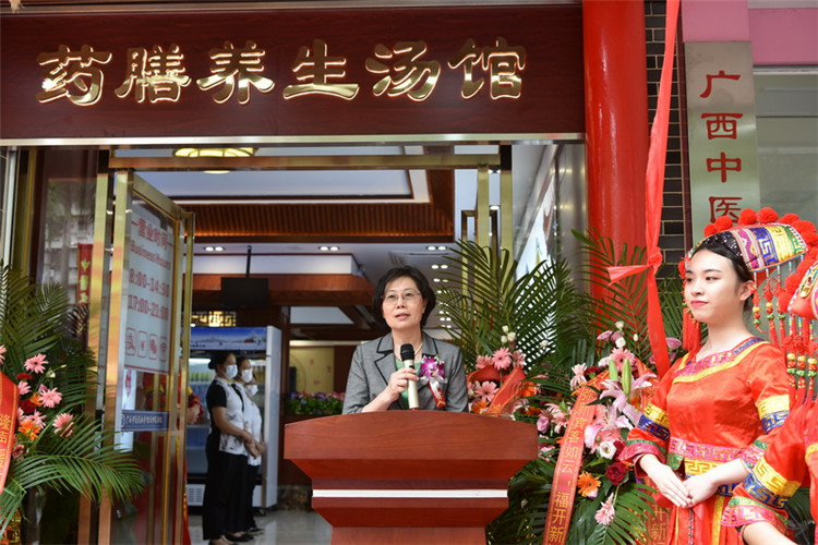6月18日上午,广西中医药大学附设中医学校携手南宁雪会五千年餐饮文化有限公司隆重举行校企双方共建的中医药文化养生药膳馆开业揭牌仪式。广西中医药大学副校长冷静、科技处处长肖健、《广西中医药》《广西中医药大学学报》编辑部主任林辰教授、附设中医学校校长刘竑清、南宁雪会五千年餐饮文化有限公司董事长袁斌及相关部门负责人出席了开业揭牌仪式。仪式由附设中医学校副校长周琦主持。