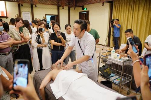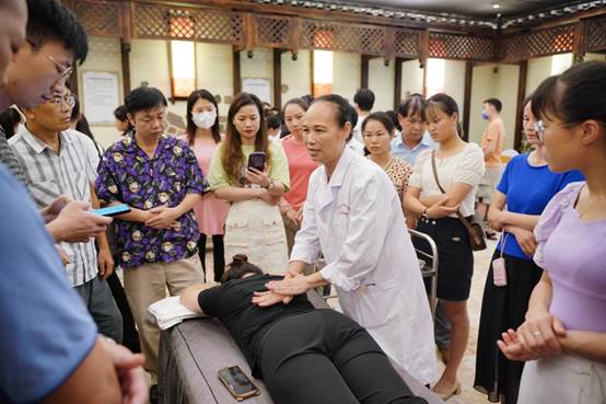 本期培训班邀请到了自治区中医药局规划产业处蒋志敏主任、广西中医药大学内经教研室主任蒋筱教授、广西中医药大学第一附属医院推拿科副主任杨宇医师和康复医学科主任陈广辉医师、广西金秀瑶医医院副院长罗秋香医师、桂林中西医结合医院赵东梅主任等专家为学员授课。各位授课专家从中医药壮瑶医药政策解读,中医基础理论(体质辨识)、中医药膳食疗养生、中药的性能(四气五味)、瑶医药康养特色优势及庞桶药浴疗法、中医推拿养生常用手法、中医运动养生学-华佗五禽戏等为主题做专题授课。为让学员们更好地掌握中医养生保健技术,实操课程采取分组进行,由我校理论知识扎实,技术水平高超的教师进行带教,逐一进行指导,使学员能尽快掌握基本的保健推拿手法、刮痧、艾灸、拔罐等技术。