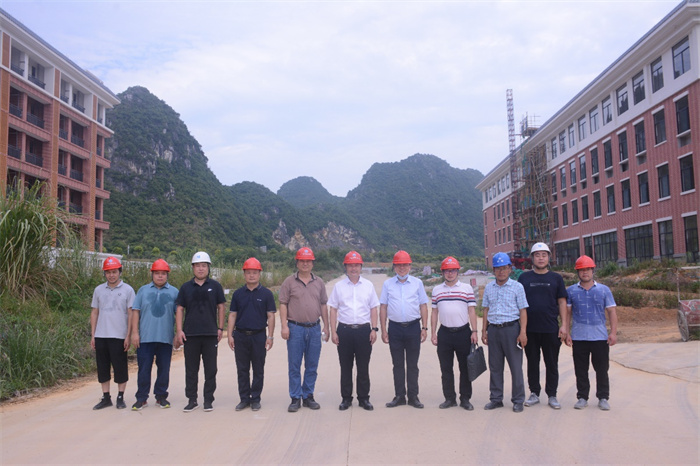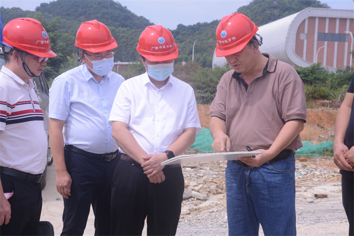 7月29日上午,广西中医药大学党委副书记庞宇舟在党办副主任兰达治的陪同下,到我校东盟校区进行调研指导工作,学校校长刘竑清、副校长林原、施工单位领导、监理负责人等陪同调研。