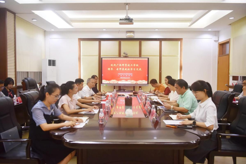 6月18日下午,广西群贤技工学校江权峰理事长一行8人到访我院(校),双方就学生管理、职教高考、特色专业、产教融合、校企合作等重点工作开展学习交流。院(校)党委副书记、院(校)长马秋平率相关部门负责人热情接待,双方举行座谈并深入探讨职业教育高质量发展的新路径。此次座谈会由副院(校)长韦文朗主持。