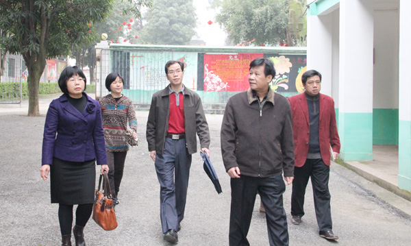 高职院邓远美院长(左一)、蓝开宝副院长(左三)对江南教学分部进行教学检查