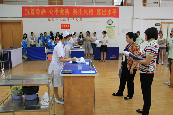 本届大赛总共有来自19个班级的145名选手参与推拿保健、美容保健、药学及护理等四个方面职业技能的角逐。比赛一开始即进入白热化状态,选手们各显神勇,他们熟练的操作技能和扎实的理论功底获得了领导、评委和同学们的一致赞许。