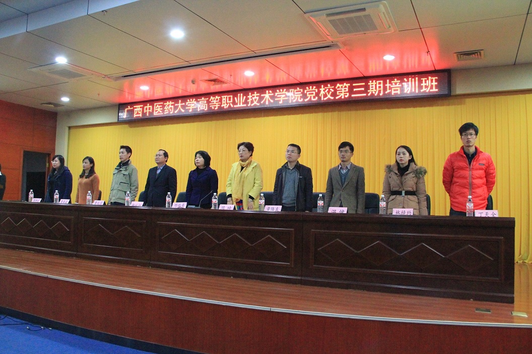 2015年12月26日是毛泽东同志诞辰122周年纪念日。我校高职院党校第三期培训班就在这个具有特殊意义的日子里顺利开班了。培训班开班仪式在我校仙湖校区图书馆二楼大会议室举行。广西中医药大学高职院党总支书记、高职处处长、院长邓远美,高职院党总支副书记、高职处副处长、副院长周琦,高职处副处长、副院长杨仕权,高职院学生党支部书记、学生科科长黄陆良,高职院全体辅导员以及近400名入党积极分子参加了开班仪式。