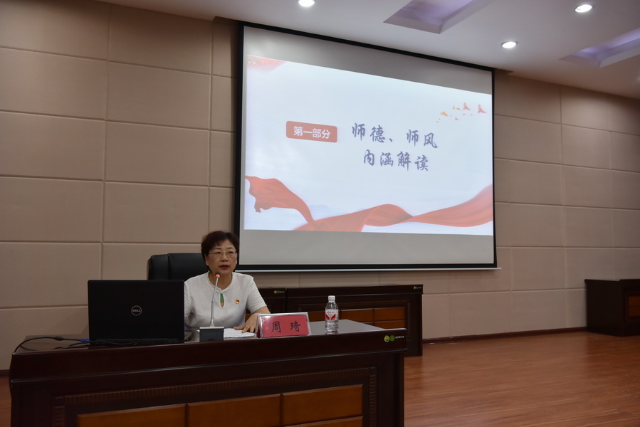 高职院、附设中医学校纪委书记周琦在主持揭牌仪式后,讲授第一堂专题讲习课。她以《立德树人、修德长技、教书育人——打造新时代党和人民满意的高素质、专业化教师队伍》为题的讲习活动,分别从师德师风内涵解读、违反师德师风的现象及根源、相关法律法规解读、新时代如何加强师德师风建设四个方面进行解读,通过大量的典型案例引导教师要守住师德底线、不碰师德红线,打造新时代党和人民满意的高素质、专业化教师队伍。