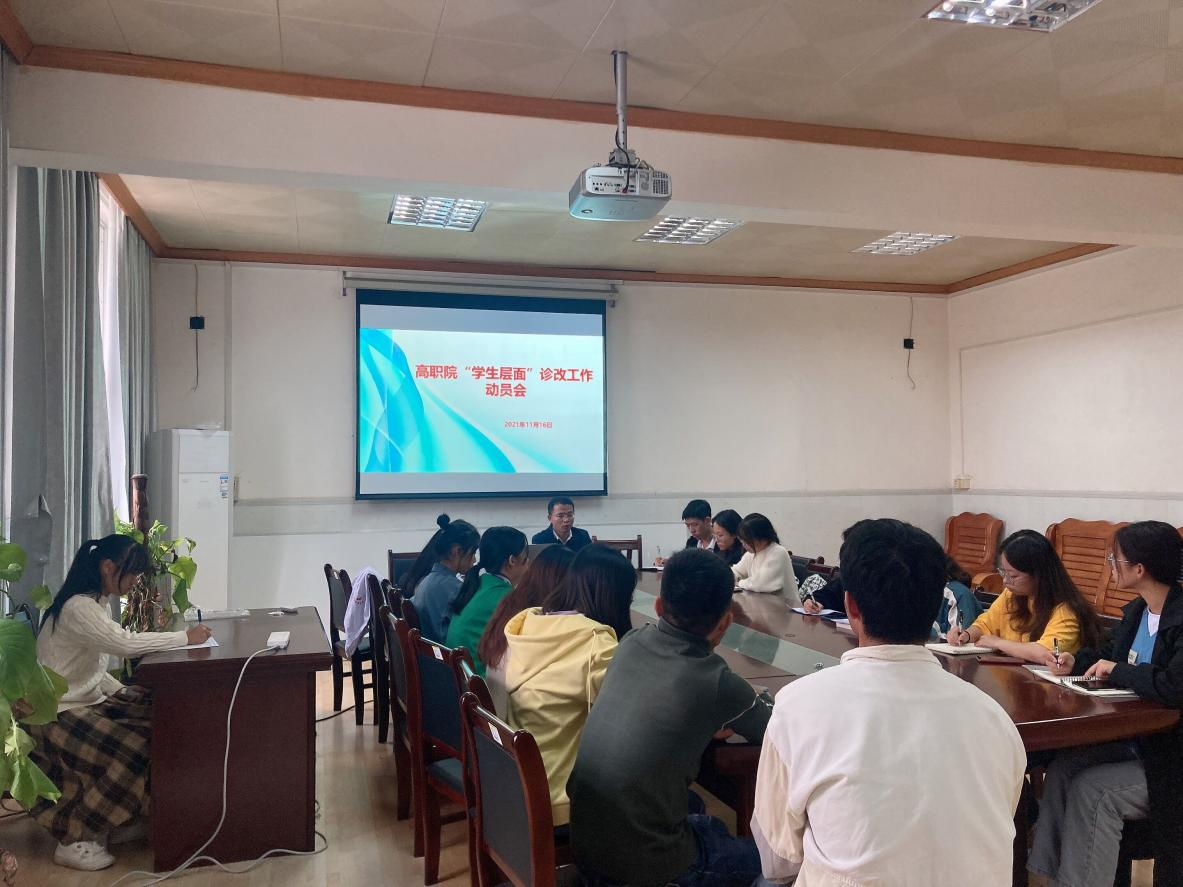 11月16日,高职院学工办主任黄陆良老师在召开了辅导员诊改工作会议的基础上,对明秀校区在校班级召开了工作动员会。会上,黄老师阐述了诊改的由来、目的以及具体推进措施,详细解读了诊改的每一项具体任务,要求辅导员深入班级开展宣传解读,广泛动员,指导好学生对标对表认真填写相关表格,各级班干回到班级要抓好每一项工作的落实。