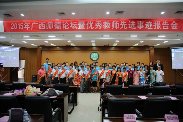 潜心耕耘 服务社会——我校吴彬校长先进事迹在2015年全区师德论坛作典型介绍 发布时间:2015-11-13 20:53:36 浏览次数: 次 【字体:小 大】 在全国第31个教师节来临之际,9月9日上午,2015年广西师德论坛暨优秀教师先进事迹报告会在自治区教育厅举行。报告会以“爱与责任”为主题,通过视频短片和现场采访的形式展示了我区6位优秀教师的先进事迹。我校吴彬校长先进事迹在报告会上做典型介绍。 吴彬校长接受采访 少先队员献花 优秀教师合影 分享到: 【打印正文】