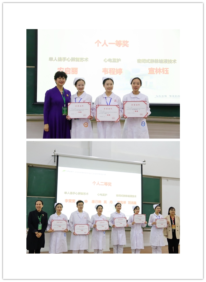 经过激烈的角逐,柳州市人民医院代表队收获团体一等奖,学校第一附属医院第二代表队、自治区人民医院代表队拿下团体二等奖,学校第一附属医院第一代表队、附属瑞康医院、国际壮医医院和南宁市第一人民医院代表队分获团体三等奖。个人赛项方面,南宁市第一人民医院代表队农启丽荣获单人徒手心肺复苏术赛项一等奖,自治区人民医院代表队韦程婷荣获心电监护赛项一等奖,柳州市人民医院代表队宣林钰荣获密闭式静脉输液技术赛项一等奖。