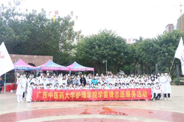 3月21日上午,广西中医药大学护理学院团委学生会在南宁市青秀区仙葫广场开展学雷锋志愿服务活动。此次活动以义诊形式开展,护理学院党委副书记韩叶芬、学工办主任蓝红霞、分团委书记布银瑶,全体辅导员及学院团委学生会76名委员、20名志愿者参加本次活动。