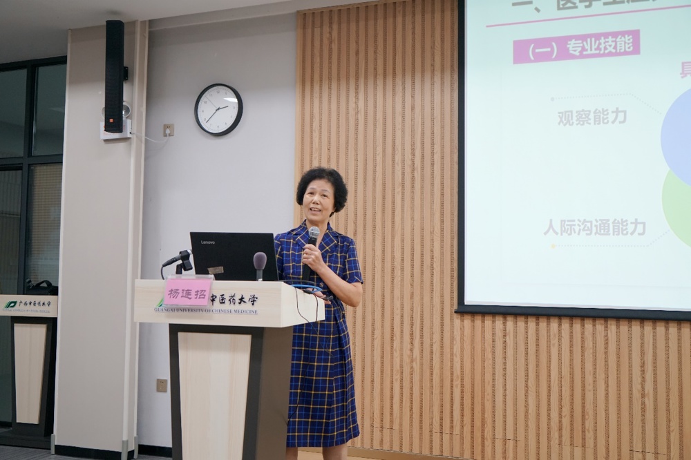 接着,杨连招以“新时代医学生职业素养与职业发展”为主题,通过大量生动形象的案例,深入浅出讲述了医学生应具备的基本素养。根据医学生就业的现状,提出新时代下医学生要树立远大理想,培养优良品质培养职业意识;要培养职业意识,规划职业发展;要勤于学习,打牢人生成长进步的根基;要加强以“爱”为核心的医学人文精神培养;要严谨务实,勇于创新。